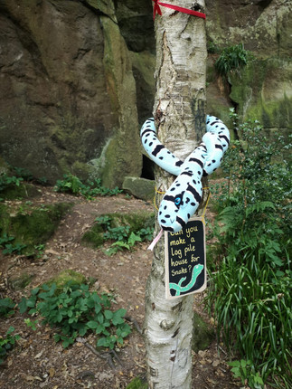 Bonnie carefully explained the different activities that were on offer and suggested we have a look around so the kids could decide what they would like to do first. There were craft activities to do including origami foxes, colouring, snipping and hollowing out pieces of branches to make snakes with pipe cleaners, and constructing clay creatures. More hands-on activities were using logs to make a log pile house for snake and a messy Mouse’s Café mud kitchen to make your own scrambled snake, owl ice-cream or even roasted fox! My daughter thoroughly enjoyed a tray with various cuddly animals and painted stones encouraging children to come and tell a story with story stones. We loved this creative idea and can’t wait to paint our own story stones at home!